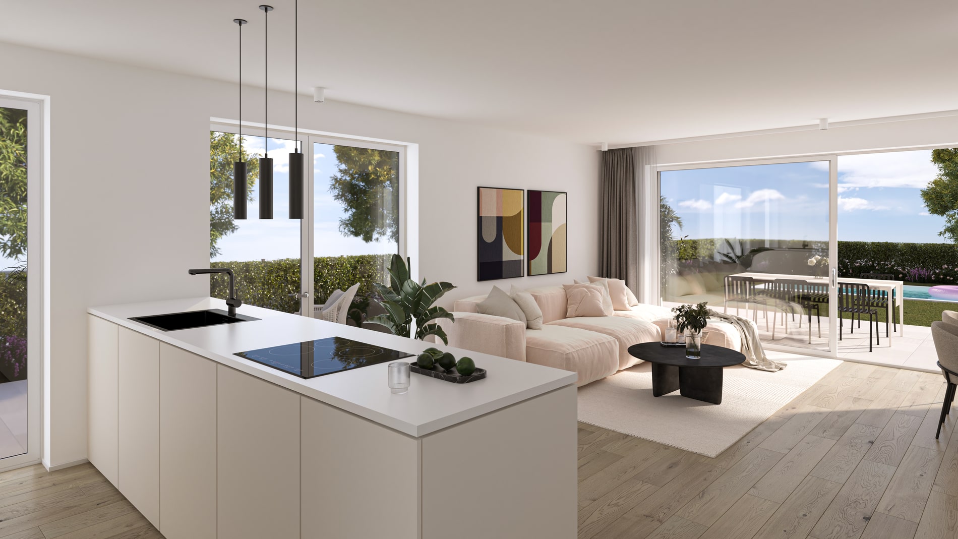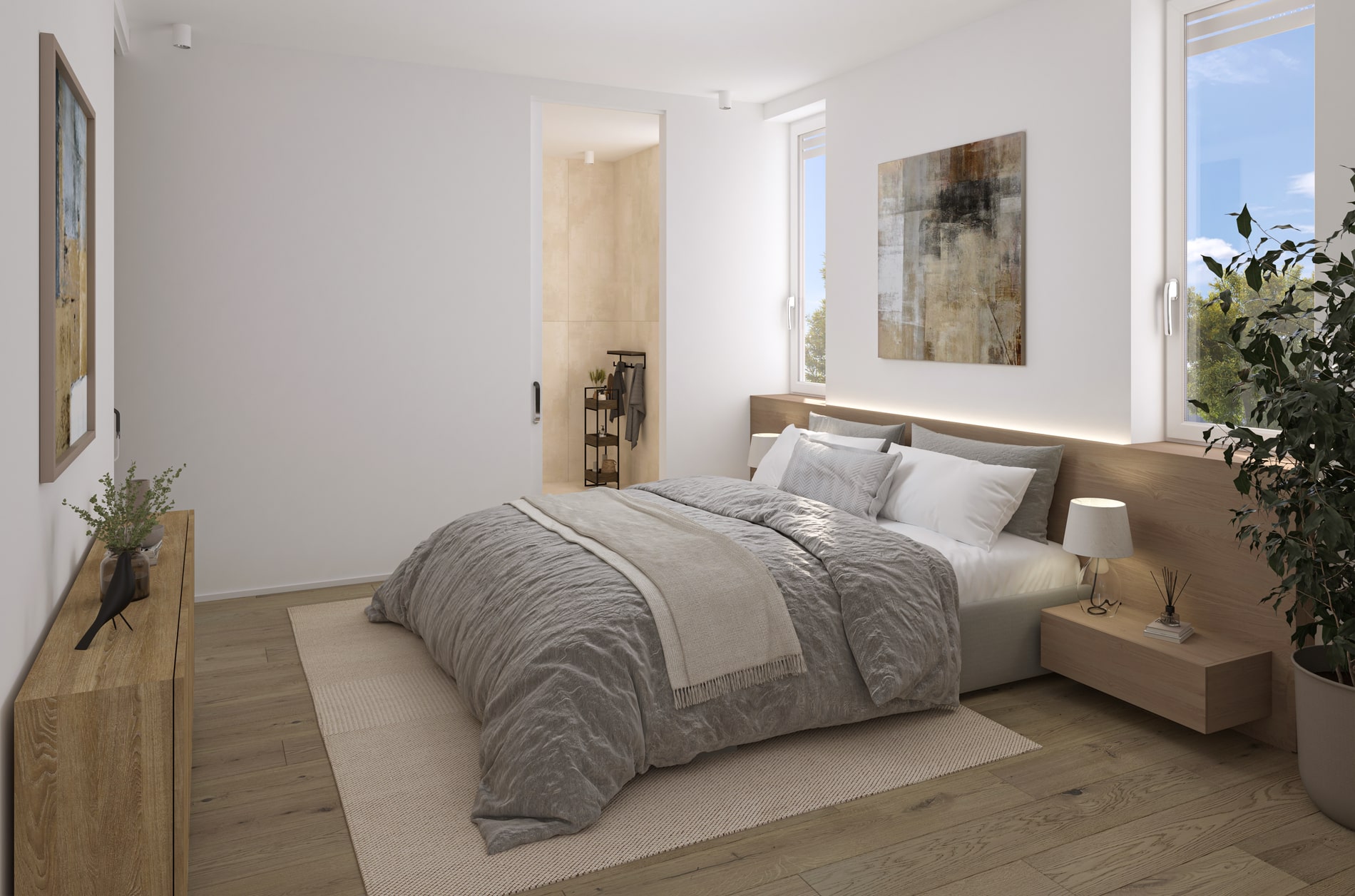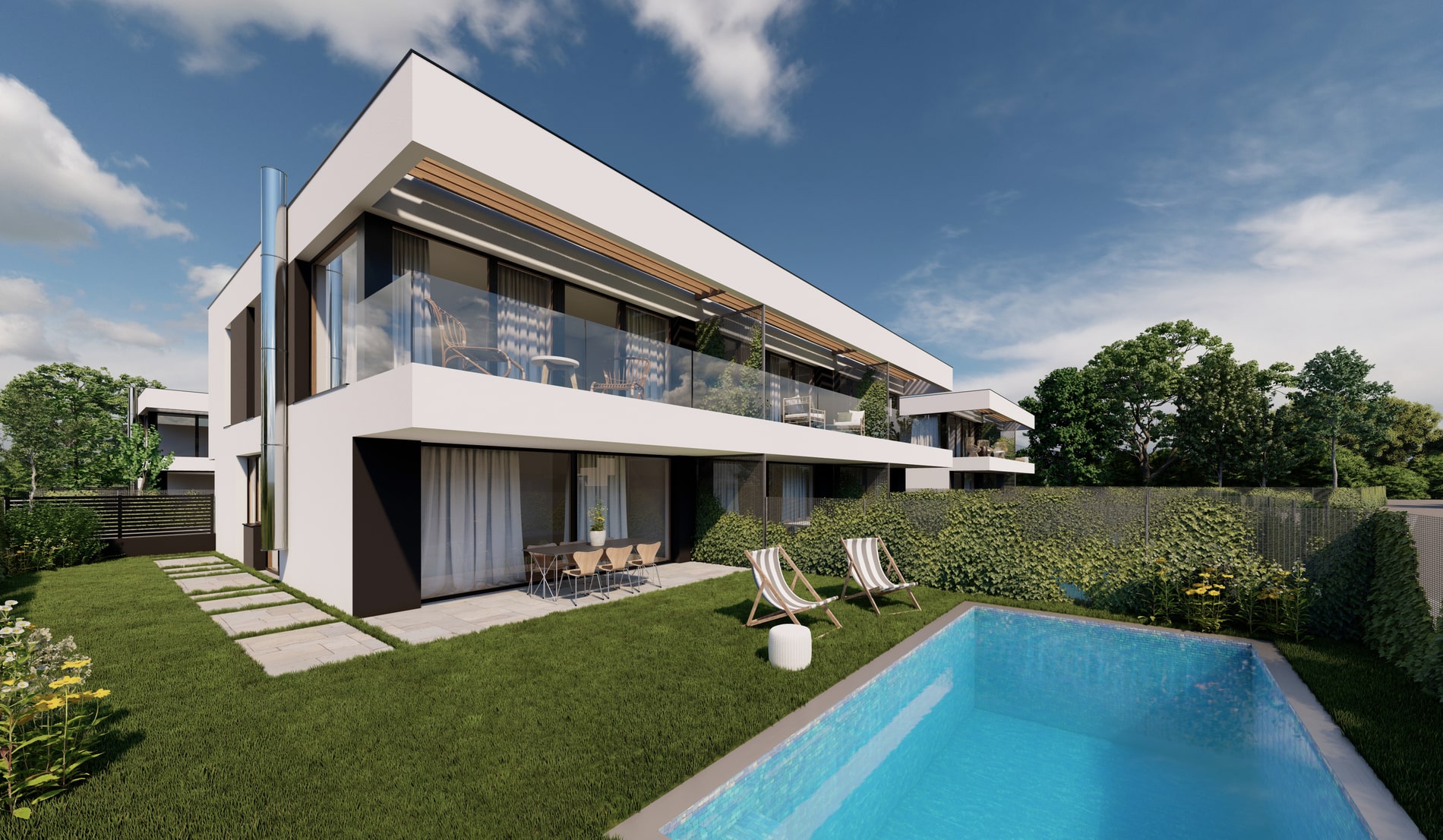 Alle Häuser werden belagsfertig angeboten und sind mit hochwertiger, moderner Ausstattung versehen. Die dreifach isolierverglasten Fenster sorgen für hervorragende Wärme- und Schalldämmung gemäß ÖNORM. Eine Aluminium-Sicherheitstür bietet Ihnen die nötige Sicherheit, um Ihr neues Zuhause in vollen Zügen zu genießen. Außerdem sind alle Fenster und Türen mit Insektenschutzgittern sowie elektrischen Rollläden oder Jalousien ausgestattet. Elektro- und Sanitärinstallationen sind bereits abgeschlossen, und auch die Heizungs- und Lüftungsanlagen sind installiert. Dank einer modernen Luftwärmepumpe wird das Heizen in den kalten Monaten energieeffizient. Jede Einheit verfügt zudem über mehrere Außenbereiche wie Gärten, Balkone und Terrassen. Damit ist die ideale Grundlage für Ihren individuellen Wohntraum geschaffen.